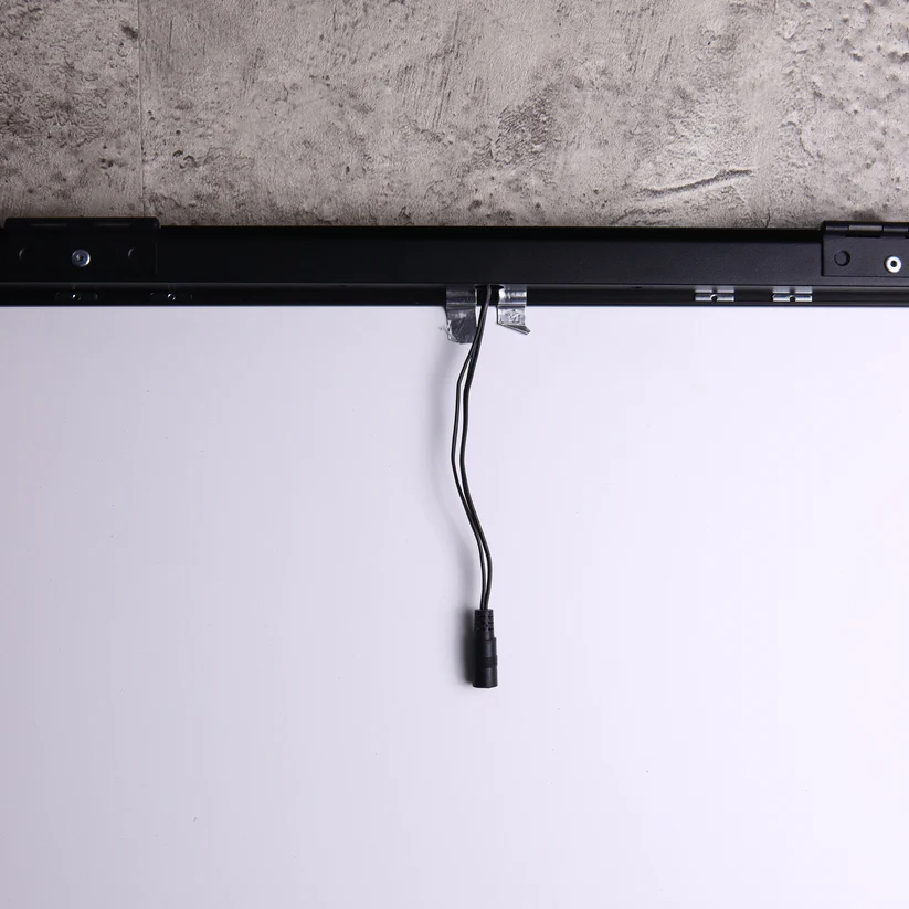 - Le panneau mural est équipé de diodes électroluminescentes (LED), reconnues pour leur faible consommation d’énergie et leur longue durée de vie. Ce système garantit une luminosité efficace tout en réduisant les coûts énergétiques pour le magasin.