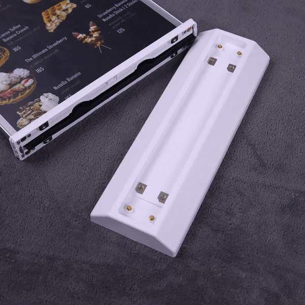 - Facilité d’utilisation : Insérez simplement vos menus ou affiches dans le support et allumez l’éclairage pour une mise en avant immédiate.