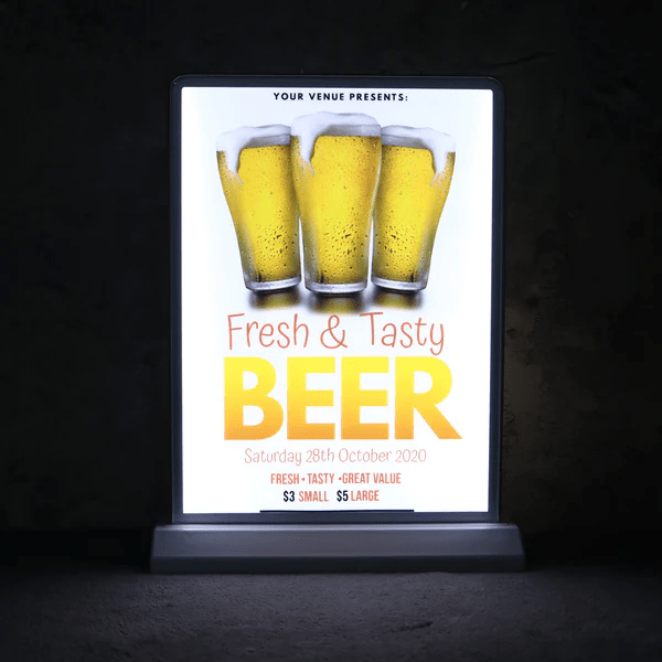 - Éclairage LED de haute qualité : Les porte-menus lumineux sont équipés de LED puissantes mais économes en énergie. Elles offrent une lumière douce et non éblouissante, idéale pour lire dans un cadre tamisé.